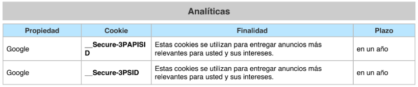 Conforme con la Ley 34/2002, de 11 de julio, de servicios de la sociedad de la información y de comercio electrónico (LSSI), en relación con el Reglamento (UE) 2016/679 del Parlamento Europeo y del Consejo, de 27 de abril de 2016, General de Protección de Datos (RGPD) y la Ley Orgánica 3/2018, de 5 de diciembre, de Protección de Datos y Garantía de los Derechos Digitales (LOPDGDD), es obligado obtener el consentimiento expreso del usuario de todas las páginas web que usan cookies prescindibles, antes de que este navegue por ellas.