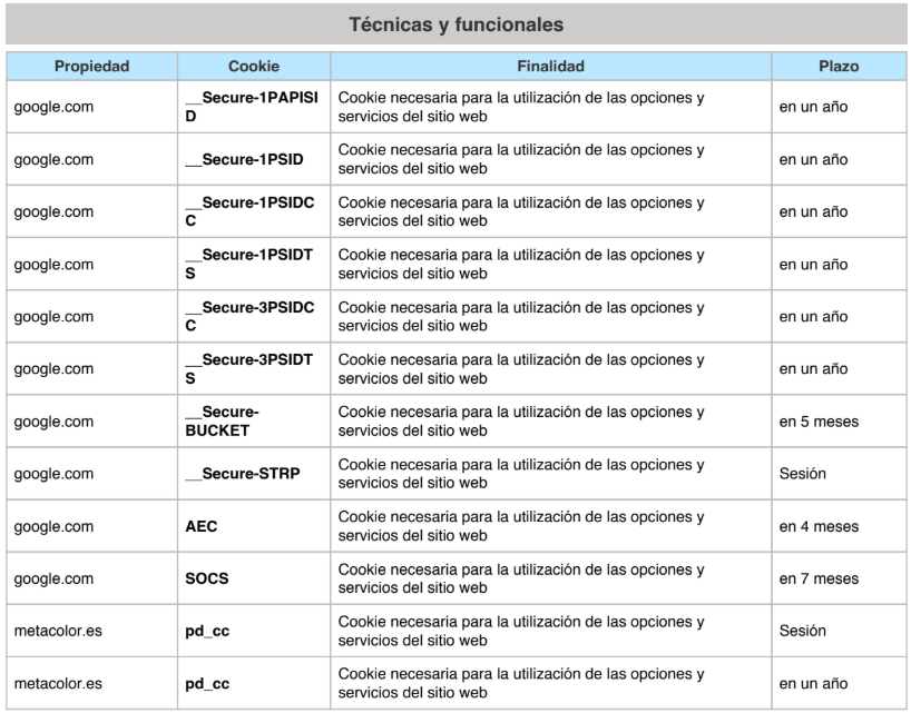 – Cookies técnicas y funcionales: son aquellas que permiten al usuario la navegación a través de una página web, plataforma o aplicación y la utilización de las diferentes opciones o servicios que en ella existan.